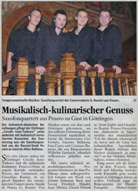 Cristiano nel Quartetto di Sassofoni Rossini in un quotidiano tedesco (Gottingen, 2007)